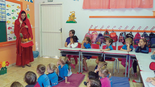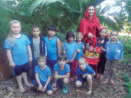 A expedição investigativa ocorreu na sala de através de uma contação de história: chapeuzinho Vermelho, na qual a personagem trouxe uma cesta de frutas enfatizando para as crianças a importância de uma alimentação saudável e o nome das frutas na língua estrangeira. Na ocasião, os alunos puderam conhecer e experimentar diferentes frutas.