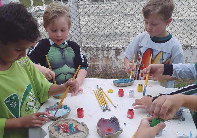 Os educandos compreenderam que é necessário misturar as cores primárias para obter as cores secundárias. E aprenderam também que não podemos obter as cores primárias misturando outras cores. Foram momentos de descobertas, de conhecerem as cores secundárias através de misturas de tintas.