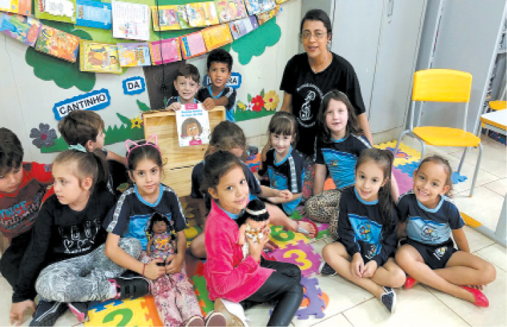 “Convidamos a mãe de uma aluna, a Mamãe Marcia, para a contação da história “A ovelha rosa da dona rosa”. Foi uma história muito interessante para todos, pois ela nos mostrou que somos importantes e temos características próprias, que precisam ser respeitadas. A Mamãe Márcia nos ensinou que temos que viver em harmonia com todas as pessoas independentemente das diferenças.