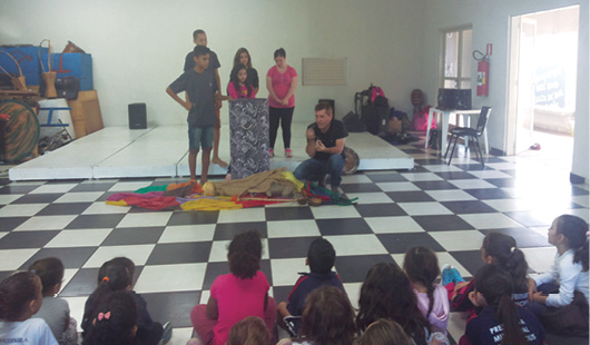 Este projeto visa trabalhar com peças de teatro associadas ao empréstimo de livros relacionados ao tema, buscando um incentivo maior à leitura de maneira lúdica. Algumas áreas de conhecimento estão envolvidas neste processo: Arte – onde trabalhamos com expressão corporal, ilustração dos temas, ritmo e a dramatização propriamente dita. Linguagem Oral e Escrita – incentivo à leitura e escrita, entonação de voz, sequência lógica dos fatos ocorridos nos relatos da roda e memorização das falas. Registro do livro lido, palavras chaves e listas dos personagens.