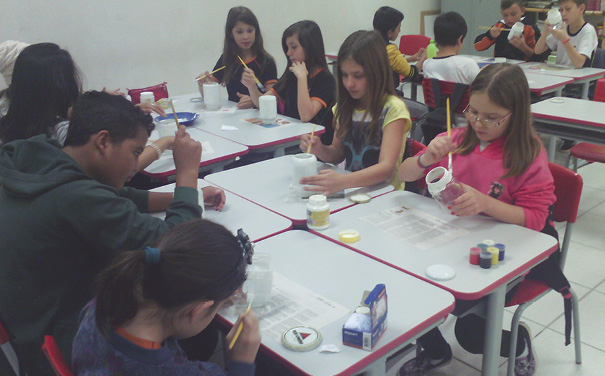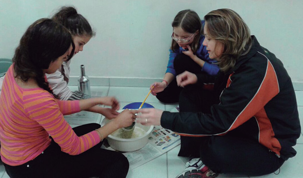 Palestra com a bióloga Ângela. Aula expositiva com o professor Tel sobre vidros e seu corte. Visita à ACOMAR e Escola Alice Santana Pinto – modalidade educação especial para visualização das oficinas realizadas com vidros.