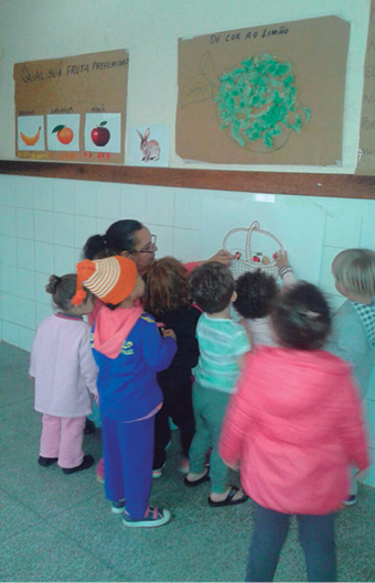 Português: oralidade, contação de histórias e descrição de figuras; Matemática: Conceito de grande e pequeno, dentro e foram quantidade, formas e cores; Natureza e sociedade: alimentos; Artes: pintura com tinta, carimbo com esponja; Movimento: música, circuito motor.