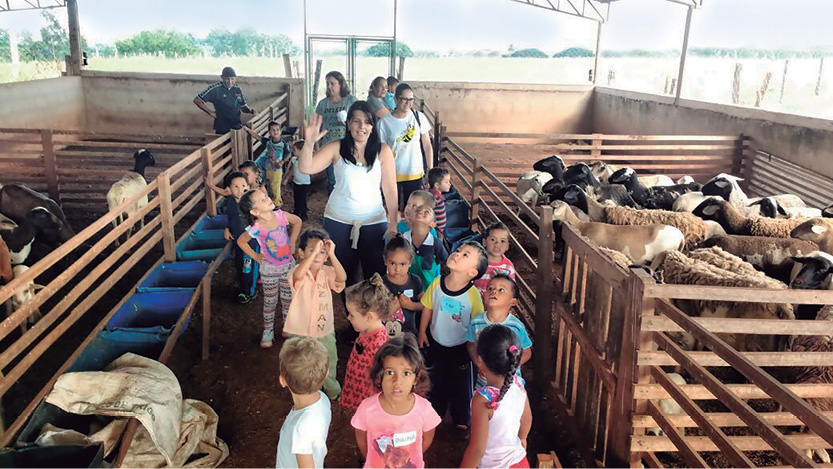 A expedição investigativa foi realizada em um sítio próximo à escola. As crianças foram recebidas pelos donos do sítio que foram mostrando os animais: ovelha, galinha, peixes, pato, cachorro, pássaros diversos. As crianças puderam ir perguntando e apontando as coisas que lhes interessavam.