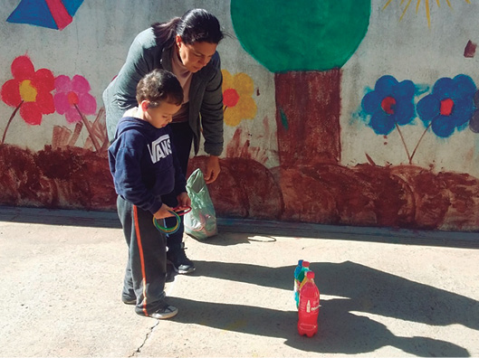 A comunidade de aprendizagem foi articulada com um profissional de educação física, que levou as crianças ao campo de futebol, onde ensinou várias brincadeiras a elas.