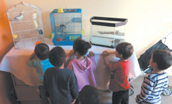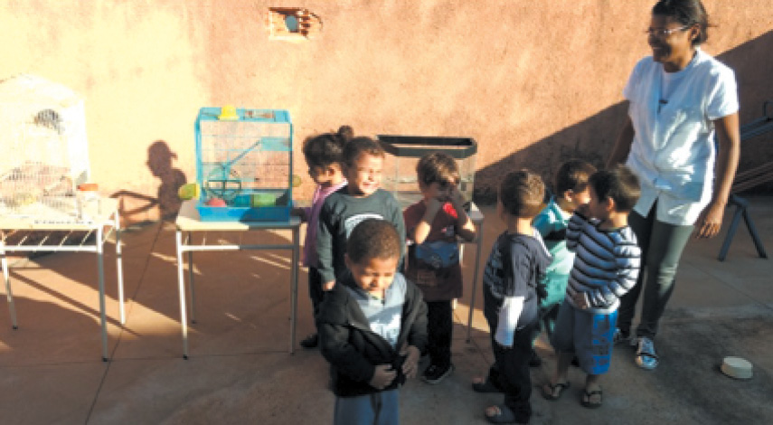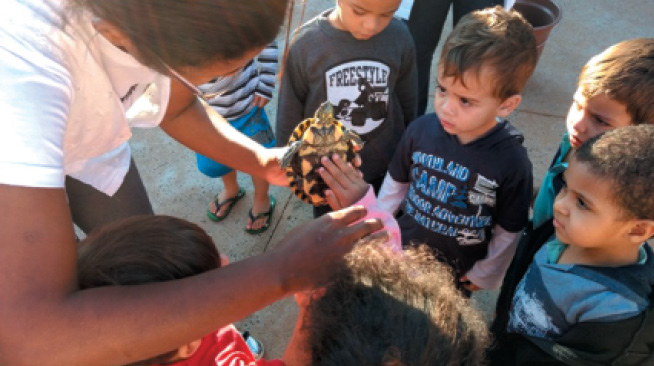 Visita a uma exposição de animais previamente organizada no pátio do CMEI.