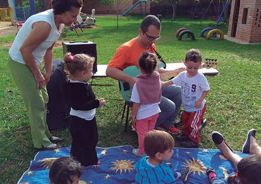 Apresentar aos bebês repertório musical constituído por estilos diversos daqueles de seu cotidiano, proporcionando contato com variadas formas de expressão sonora, incluindo a presença de instrumentistas.