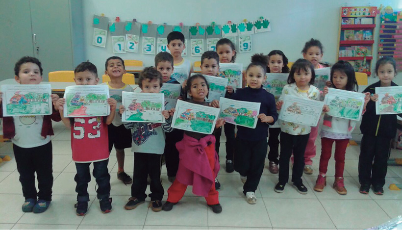 Movimento e Música: músicas infantis, dança, recreação, expedição investigativa; Linguagem oral: leitura de livros infantis, expressão oral, contação de histórias, roda de conversa, DVDs; Matemática: noção de cores e formas geométricas, contar, noção de tamanho, alto baixo, grande pequeno, quantidade, dentro, fora, classificação e seriação; Natureza e Sociedade: trabalho em grupo, expedição investigativa; Arte Visual: pintura; Identidade e Autonomia: socialização, cooperação e ajudar o outro.