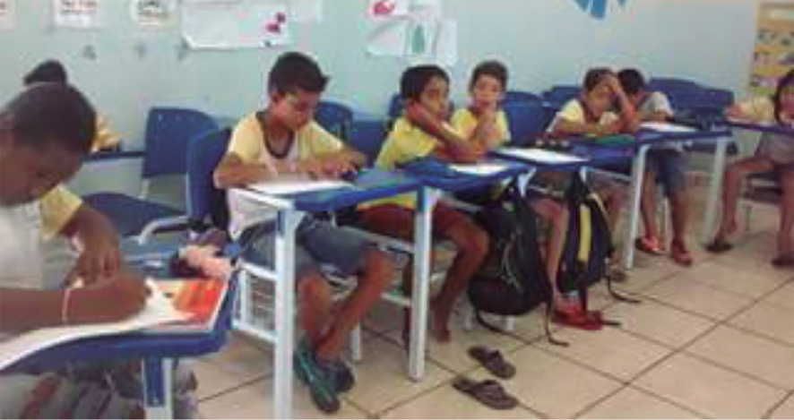 Território: Entorno da escola – Ruas do bairro. Foi realizada uma caminhada pelo bairro observando-se a paisagem, tentando diferenciar o que é natural e o que é cultural. Também coletamos lixo e outras informações que foram surgindo.