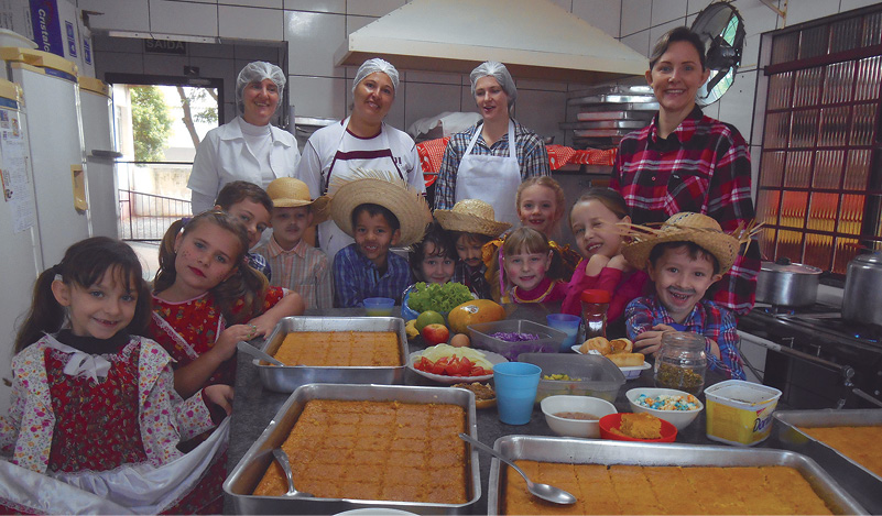 A expedição aconteceu na cozinha da escola. As crianças experimentaram alguns quitutes juninos, sentindo os sabores e cheiros diferentes. O que mais chamou a atenção delas foram as quantidades de comida que seriam servidas para todas as crianças.