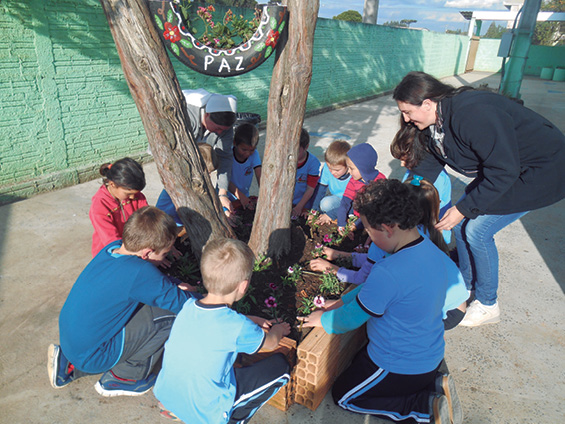 Atividades em sala de aula com educadores; Palestras com secretário do meio ambiente; Preparação das jardineiras feita pelas famílias