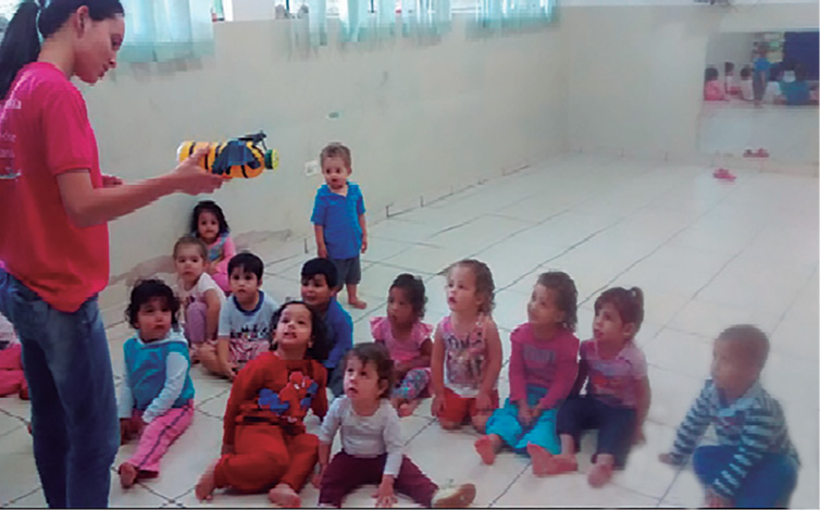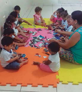 Ocorreu em sala de aula, por meio de situação hipotética de sujeira e desordem. Roda de conversa e observação do lixo. Cada criança recebeu uma folha de papel e rasgou em pedaços fazendo bastante sujeira, depois eles recolheram todo o lixo deixando a sala limpa, também foi realizado um questionamento sobre a sala limpa e sala suja.