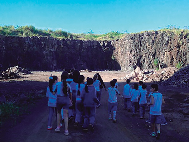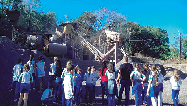 A expedição investigativa foi realizada com uma visita à Pedreira Municipal, onde os alunos puderam observar as rochas lá encontradas e o processo para transformação em pedriscos.