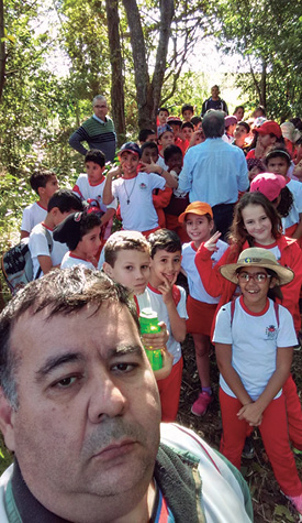 Oficina com técnico da Emater; Foi realizado um passeio no qual eles conheceram os limites do município, uma mata ciliar, uma nascente, microbacia, fossa ecológica, tudo para conservação do meio ambiente.