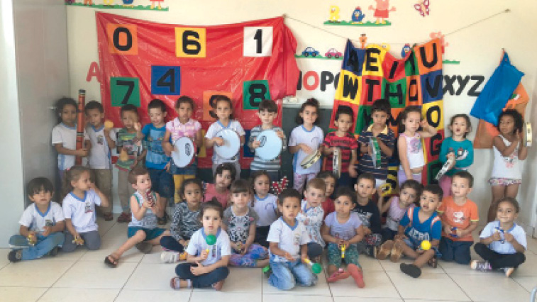 Oficina de música; varal de cantigas; visita da Abelhinha a todas as famílias, mobilizando a todos; vídeos.