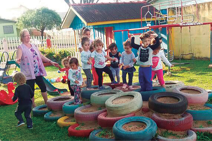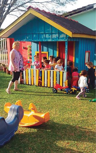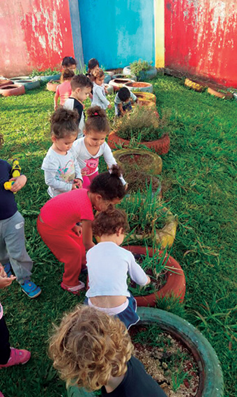 Foi realizada no pátio do CMEI onde há uma casa de bonecas de madeira que estava precisando de uma reforma, as crianças sempre gostaram de brincar ali, mas não havia como, sendo assim, elas relataram às professoras que a casa estava velha e feia, precisando ficar mais bonita para poderem brincar dentro dela. Ao lado havia um canteiro, as crianças concluíram que perto de uma casa precisa ter cenoura, alface, verduras, legumes, para a cozinheira fazer as refeições diárias. Neste sentido pensou-se que é necessário renovar o que já existe.