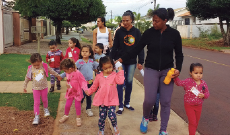Realizamos a expedição investigativa no Bairro Jardim Morumbi. Fomos até o nosso destino de ônibus, pois é distante do nosso CMEI. Caminhamos por algumas ruas e perguntamos para as pessoas, que encontramos pelo caminho, o que elas gostavam ou não naquele lugar, observando sempre os jardins das casas onde passávamos e o ambiente ao redor.