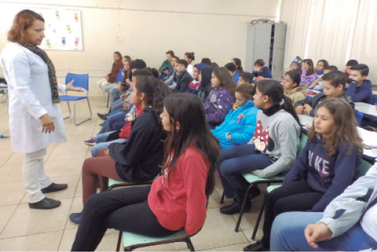 Palestra com a enfermeira Nilcéia sobre os assuntos: mudanças do organismo nas fases da vida; sistema reprodutivo; doenças transmitidas sexualmente; consequências de vícios na gravidez, que causam algumas deficiências físicas e mentais; hábitos de higiene – vida saudável.