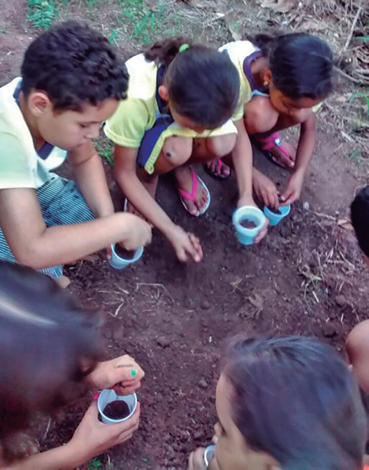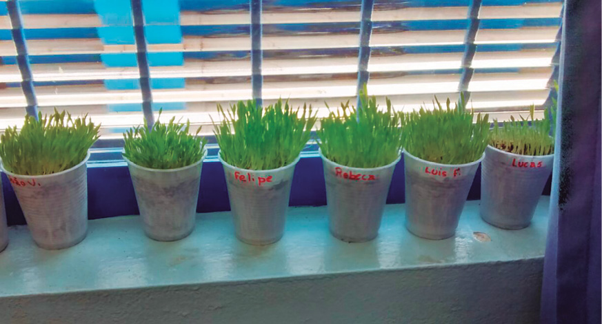 Fizemos a expedição investigativa no espaço da escola e no seu entorno para o reconhecimento da diversidade das formas de vida que compõe o nosso ambiente e identificação dos seres. A escola possui um amplo terreno anexo a ela e um ginásio, portanto, pudemos coletar vários seres vivos e não vivos para análise e estudo do conteúdo, até chegar, depois, ao projeto da construção de um terrário.