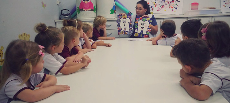 ARTICULAÇÃO COM A COMUNIDADEOficina com graduandas em Odontologia, que realizaram uma atividade lúdica, ensinando os pequenos a escovarem os dentes.