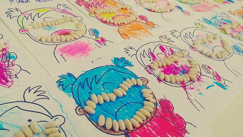 A expedição investigativa foi realizada em uma sala de aula, colocando algumas imagens de alimentos à disposição dos alunos para que explorassem e identificassem o que era e não era saudável para conservar uma higiene bucal. Após uma conversa e a contação de história dos alimentos que chamam os bichinhos para morar nos nossos dentes, os alunos colaram as imagens, separando os alimentos em seus devidos dentinhos.