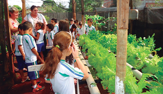 A atividade foi realizada em uma horta convencional e hidropônica, já que neste local a colaboradora conta com os dois tipos de horta. Ao chegarem, os alunos foram recepcionados pela senhora Inês, que os recebeu com muito carinho, em seguida os encaminhou até o local onde eles foram questionando sobre a forma de plantio e os produtos ali cultivados. As respostas foram bem proveitosas para o bom andamento do projeto.