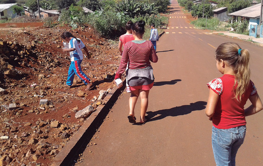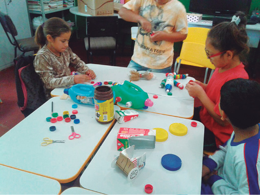 Fomos às ruas da comunidade da Vila Rica, investigar como o lixo é deixado pelos moradores. Tiramos fotos do lixo. Voltamos para a sala de aula, conversamos e decidimos transformá-lo em brinquedos.