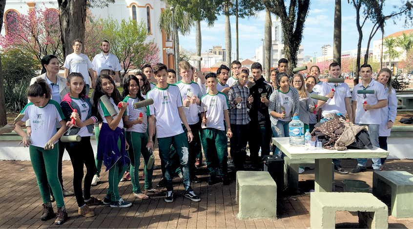 Entrevista com os frequentadores da praça da Igreja Matriz; palestra com técnicos da Secretaria de Meio Ambiente do Município; parceria com a farmácia Vale Verde, articulada com a comunidade.