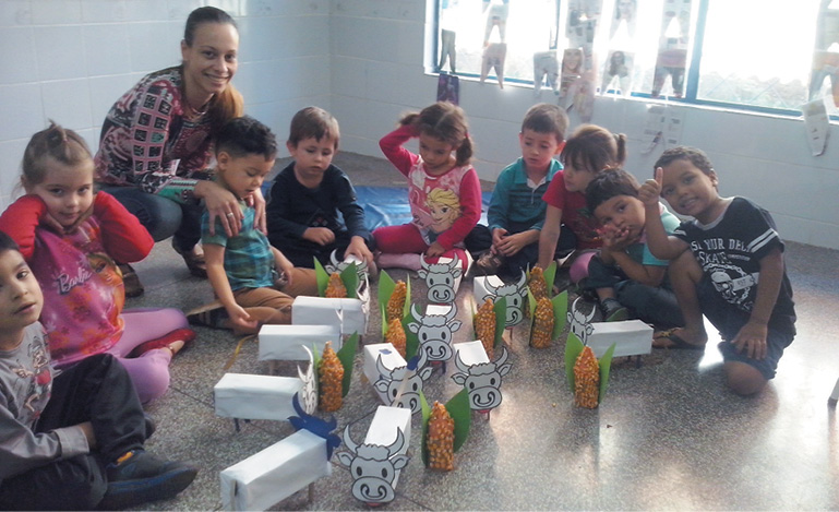 Realizamos a expedição investigativa em sala de aula com os alunos, partindo da necessidade da socialização, união e interação entre os alunos da sala e os demais alunos do CMEI. Confeccionamos alguns brinquedos e brincamos com a outra turma em uma chácara.